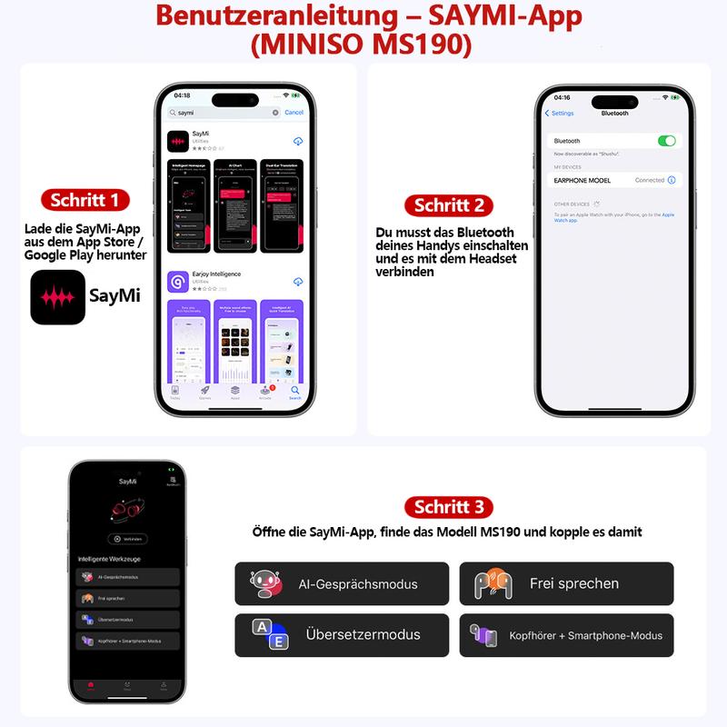 【Echtzeit-AI-Übersetzung in 134 Sprachen】MINISO MS190 bietet bidirektionale Echtzeitübersetzung in 134 Sprachen mit bis zu 98 % Genauigkeit – ideal für Reisen und internationale Gespräche.