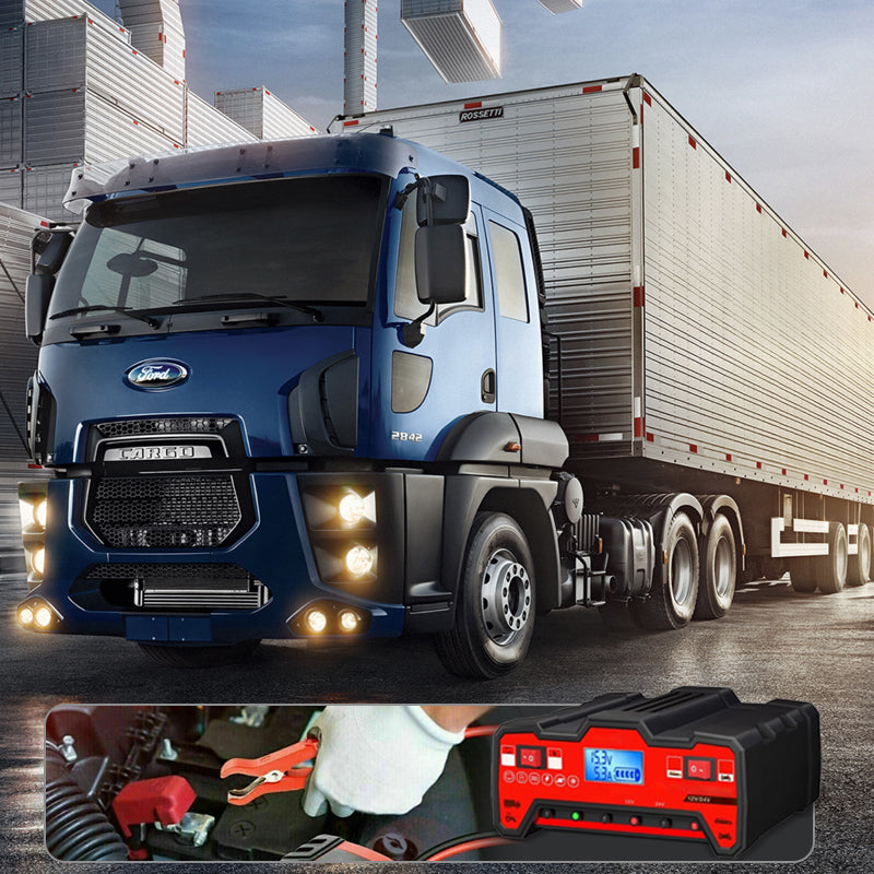WEITES ANWENDUNGSGEBIET- Geeignet für alle 12V- oder 24V-Batterien von 2AH bis 400AH, einschließlich Trocken-, Wasser-, Bleisäure- und wartungsfreien Batterien (nicht geeignet für Lithiumbatterien). Verfügt über eine automatische Abschaltung bei voller Ladung und einen 5-stufigen Ladevorgang mit Impulsreparatur zur Diagnose und Verlängerung der Batterielebensdauer.