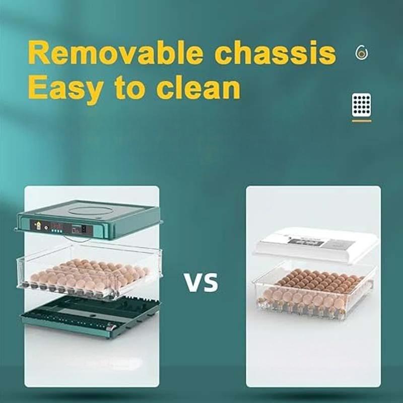 AUTOMATISCHES WENDEN DER EIER: Die verstellbaren Eierablagen drehen sich alle zwei Stunden automatisch. Dies gewährleistet eine gleichmäßige Erwärmung und verhindert das Anhaften der Embryonen, indem es die natürlichen Bedingungen originalgetreu nachahmt und Ihnen somit die manuelle Arbeit vollständig abnimmt.