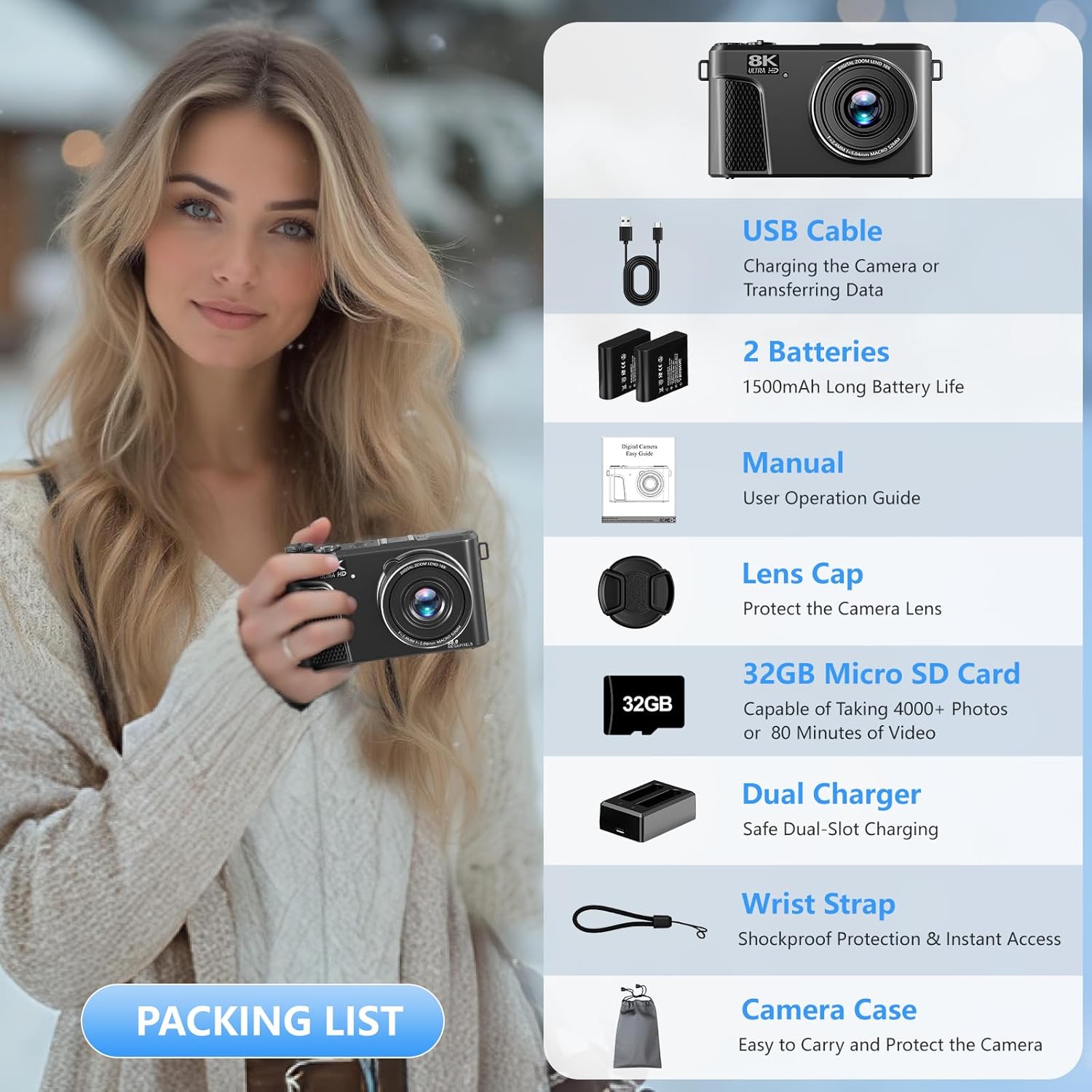 8K-Digitalkamera mit 88-Megapixel-Sensor und 3-Zoll-Flip-Screen mit 180-Grad-Schwenkbereich