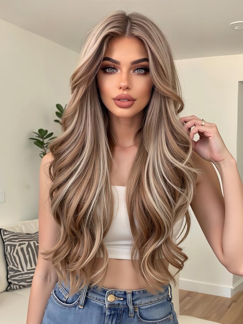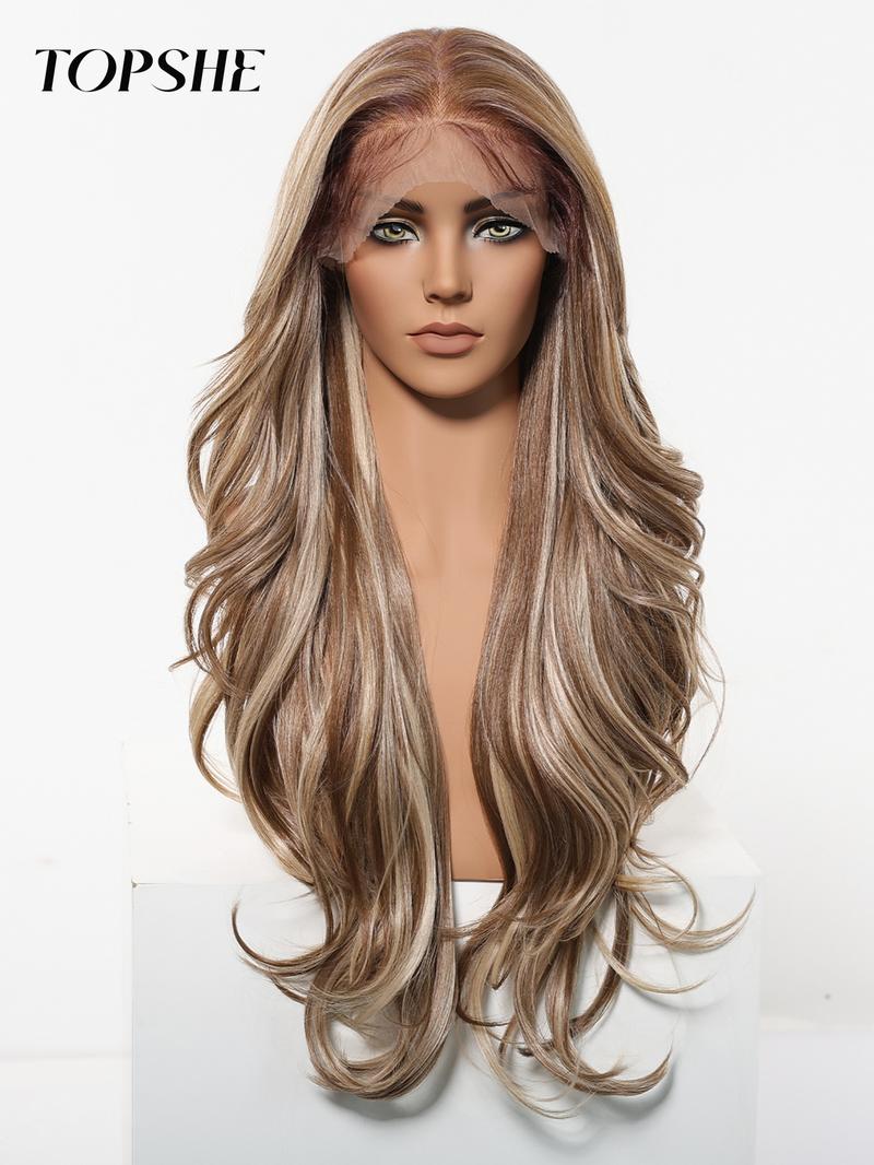💇♀️28 Zoll lange, gewellte Perücken für Damen, wunderschöne, voluminöse Perücken ohne Pony, synthetische Lace-Front-Perücken für Partys und den Alltag, Perücken, die wie echtes Haar aussehen.