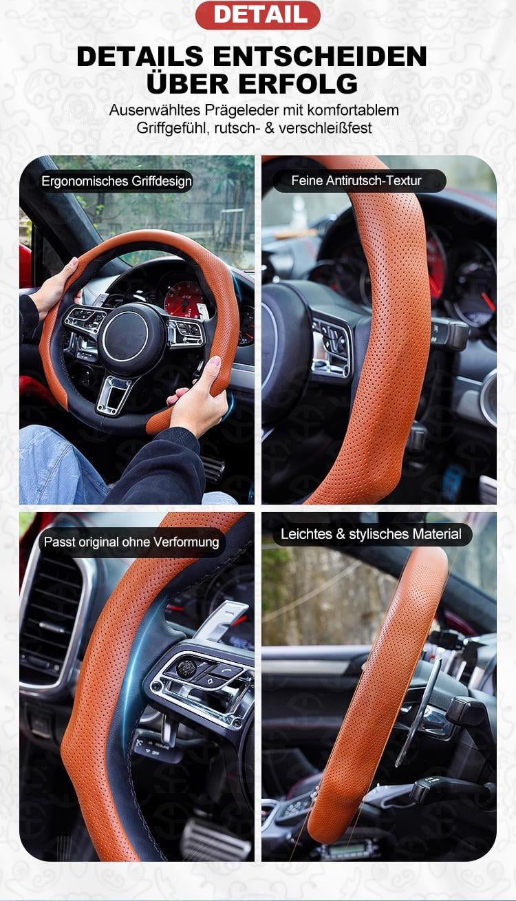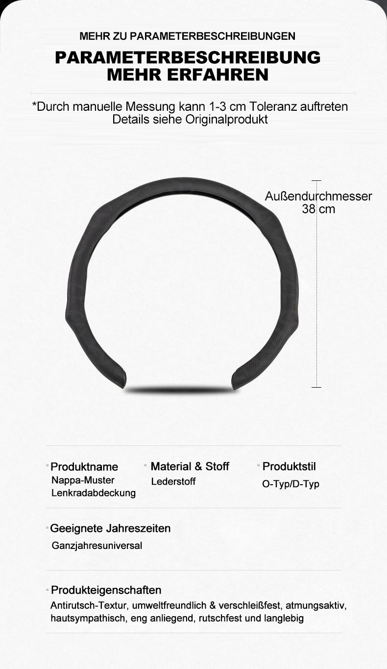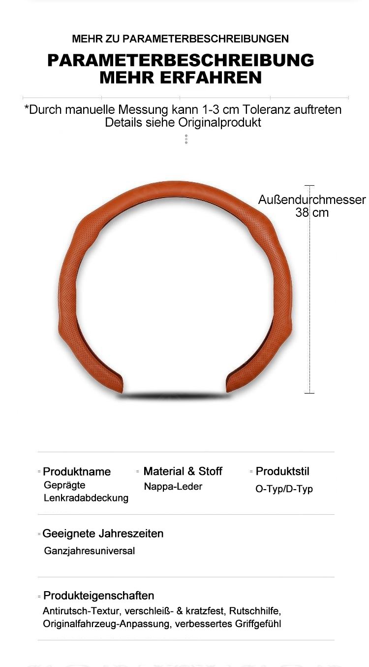 Erleben Sie Eleganz bei jeder Fahrt Verwandeln Sie das Interieur Ihres Fahrzeugs mit dem Napa Nappaleder-Lenkradbezug. Dieser hochwertige Bezug bietet ein luxuriöses Gefühl und ein elegantes Erscheinungsbild. Er ist aus erstklassigen Materialien gefertigt und verbessert das Design Ihres Fahrzeugs. Perfekt für alle, die Qualität bis ins kleinste Detail schätzen.