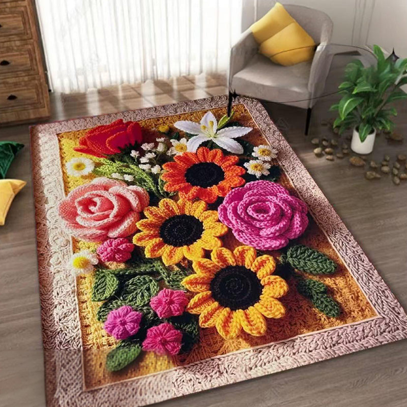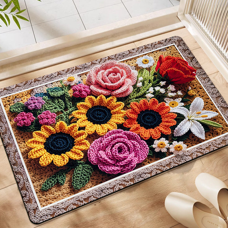💐Absorbierende, rutschfeste, gestrickte Bodenmatte mit Blumenmuster✨