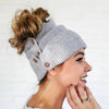 STYLE SWAPS IN SECONDS - Introducing the revolutionary button-up beanie - the perfect solution for chilly days when your hair is already styled in a messy bun or high ponytail. Our proprietary design features a hidden opening that accommodates any hairstyle, so you can easily slip on our beanie in seconds without compromising your look.
