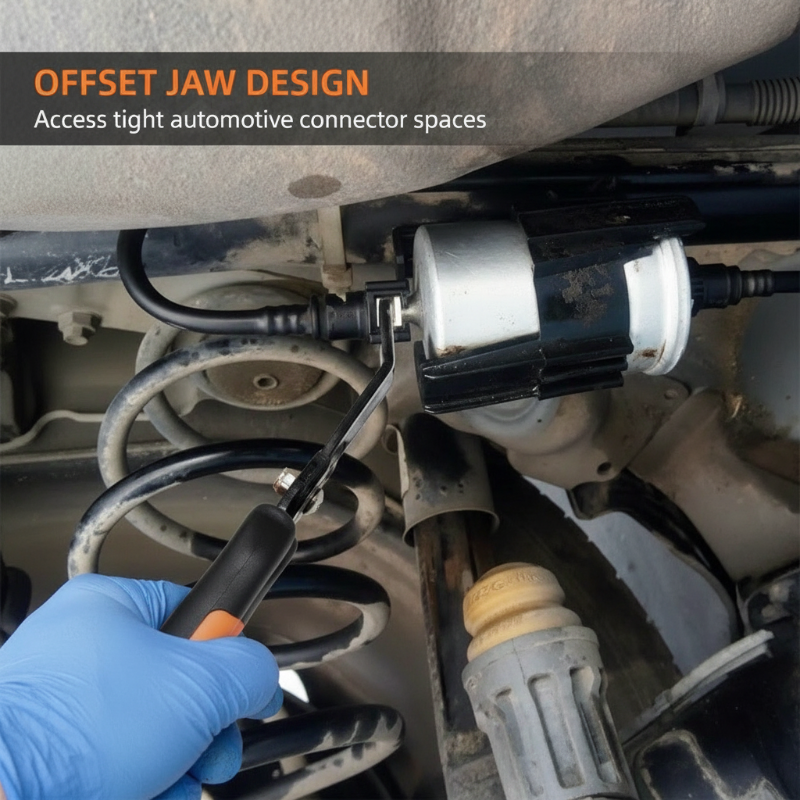 HOCHFESTE KOHLENSTOFFSTAHL-KONSTRUKTION - Diese aus hitzebehandeltem Kohlenstoffstahl geschmiedete Zange bietet überlegene Festigkeit und Langlebigkeit für den häufigen Einsatz an hartnäckigen Steckverbindern und gewährleistet langfristige Zuverlässigkeit in einer professionellen Kfz-Reparaturumgebung.