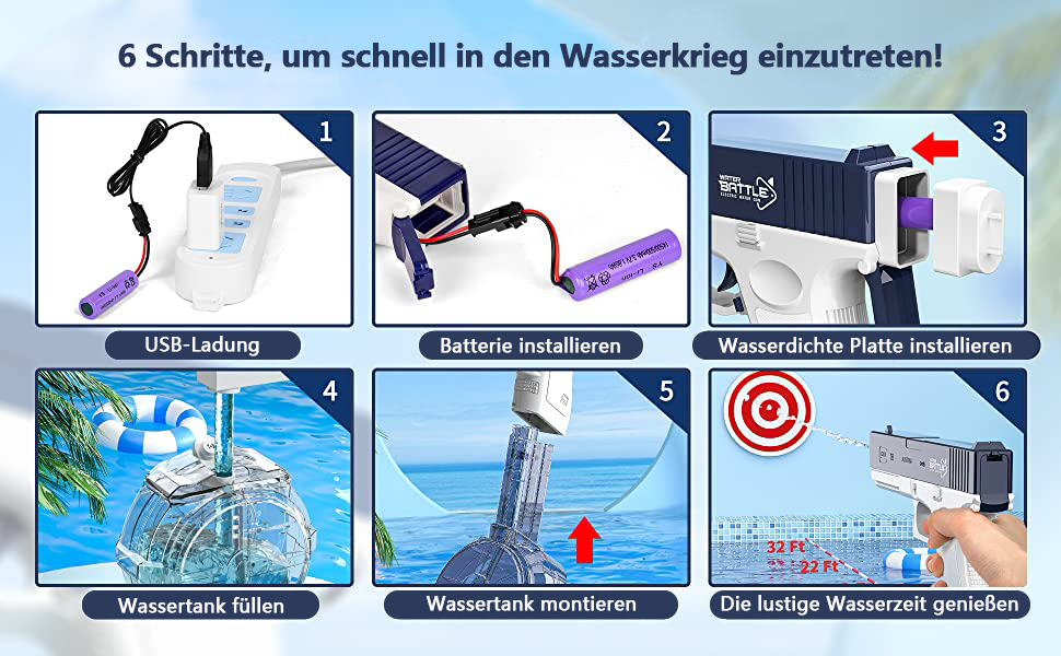 - Kleiner Körper, große Kapazität ist das größte Merkmal dieser Wasserpistole!