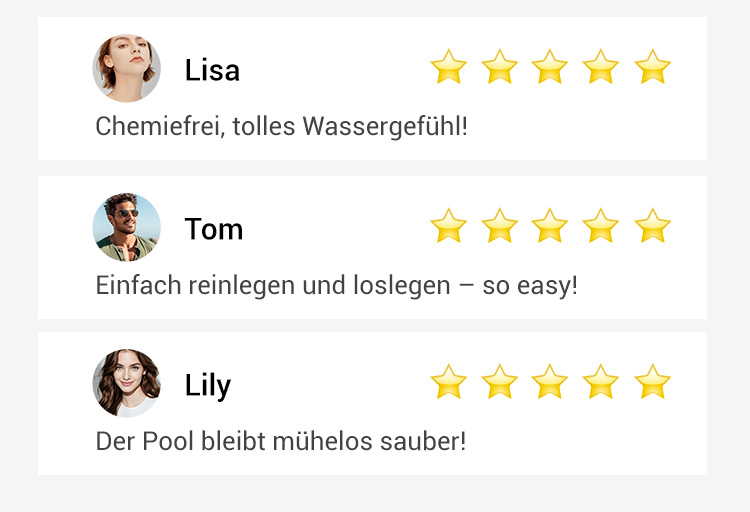 - Er nutzt Sonnenenergie, um Kupferionen freizusetzen, die Bakterien/Algen abtöten und den Chlorbedarf um 85% reduzieren.