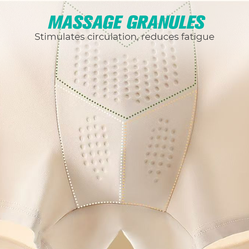 Gezielte ergonomische Massagegranulate – Feine Massagegranulate sind strategisch platziert, um die Durchblutung anzuregen und Müdigkeit zu reduzieren. Sie sorgen für eine kontinuierliche, sanfte Entspannung beim Sitzen und Bewegen und steigern so den Komfort und das Wohlbefinden über die Vorteile herkömmlicher Unterwäsche hinaus – ideal für den Alltag und sportliche Aktivitäten.