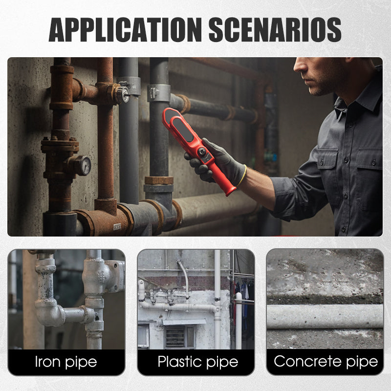 Lokalisieren Sie Verstopfungen in verschiedenen Rohrtypen präzise und sparen Sie sich kostspielige Vermutungen und umfangreiche Grabungsarbeiten. Dadurch werden Reparaturen schneller und effizienter, und der Arbeitsaufwand sowie der Materialverbrauch werden erheblich reduziert. Perfekt für Abwasser-, Trinkwasser- und Heizungsrohre.