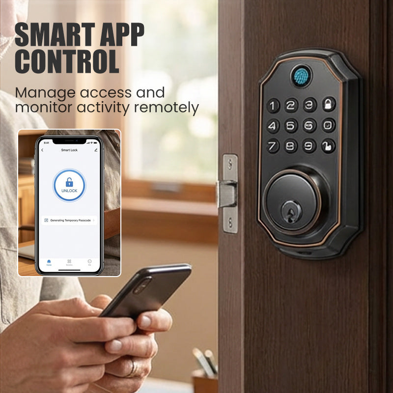 MEHRERE ENTSPERRMETHODEN - Genießen Sie vielseitigen Zugang mit Fingerabdruck, App-Steuerung, Passcode, Karte und mechanischen Schlüsseln. Dies bietet ultimativen Komfort für Familie und Gäste und stellt sicher, dass Sie nie aus Ihrem Zuhause ausgesperrt werden.
