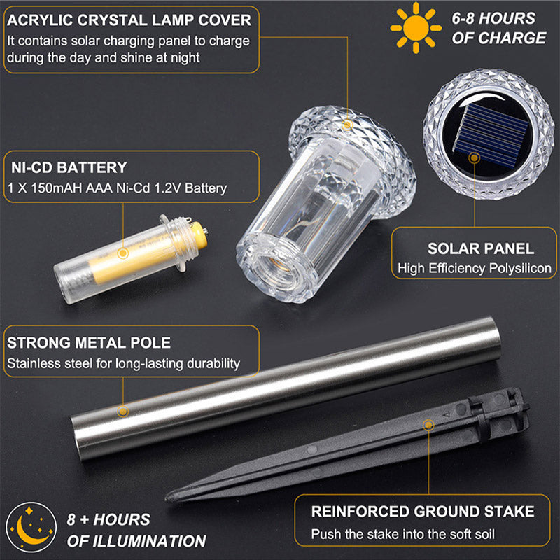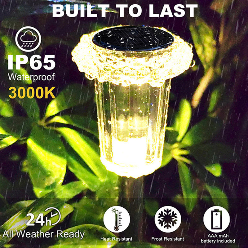 Der Acryl-Kristall-Lampenschirm schützt nicht nur das Solarpanel, sondern verleiht Ihrem Garten auch einen Hauch von Eleganz. Er erzeugt wunderschöne Lichtmuster und verbessert die visuelle Attraktivität Ihres Außenbereichs.