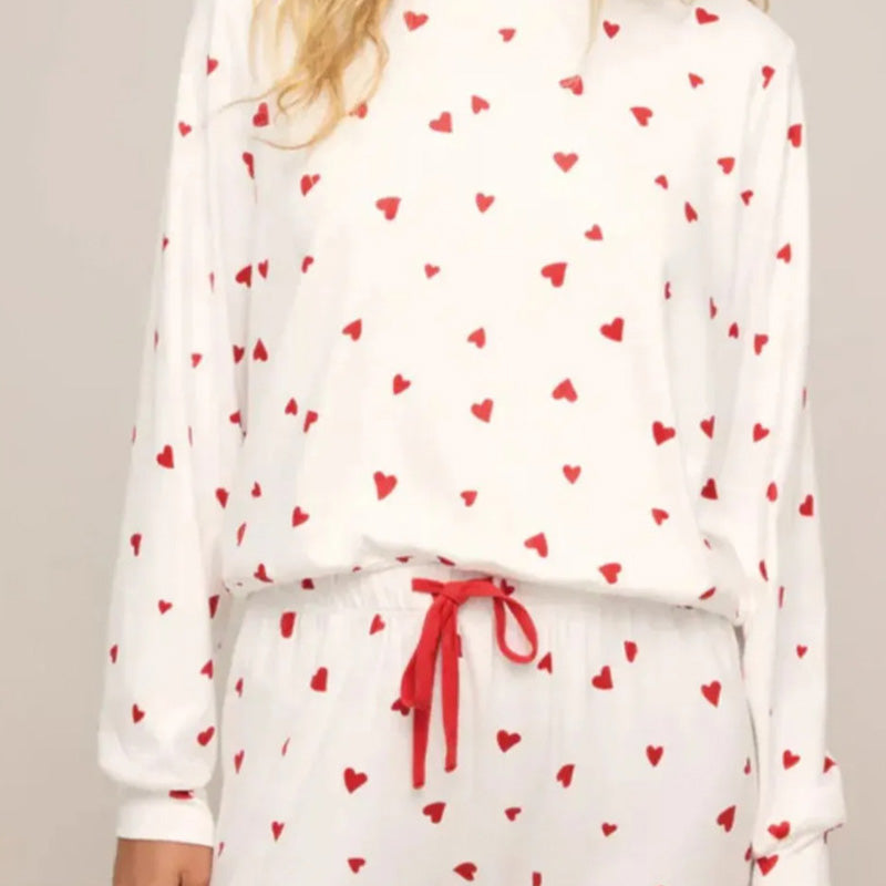 Lieferumfang: 1 x Damen-Pyjama-Set mit Oberteil und Hose mit Herzprint